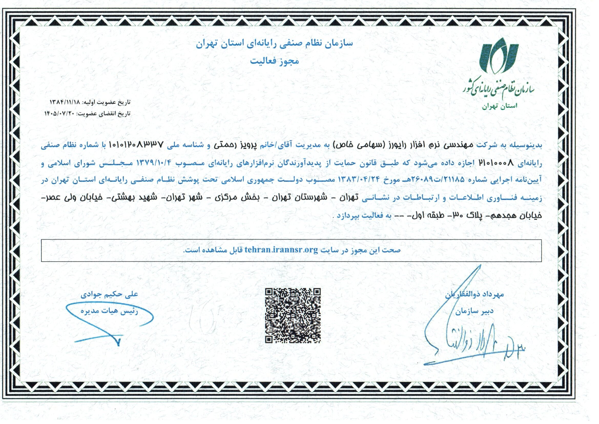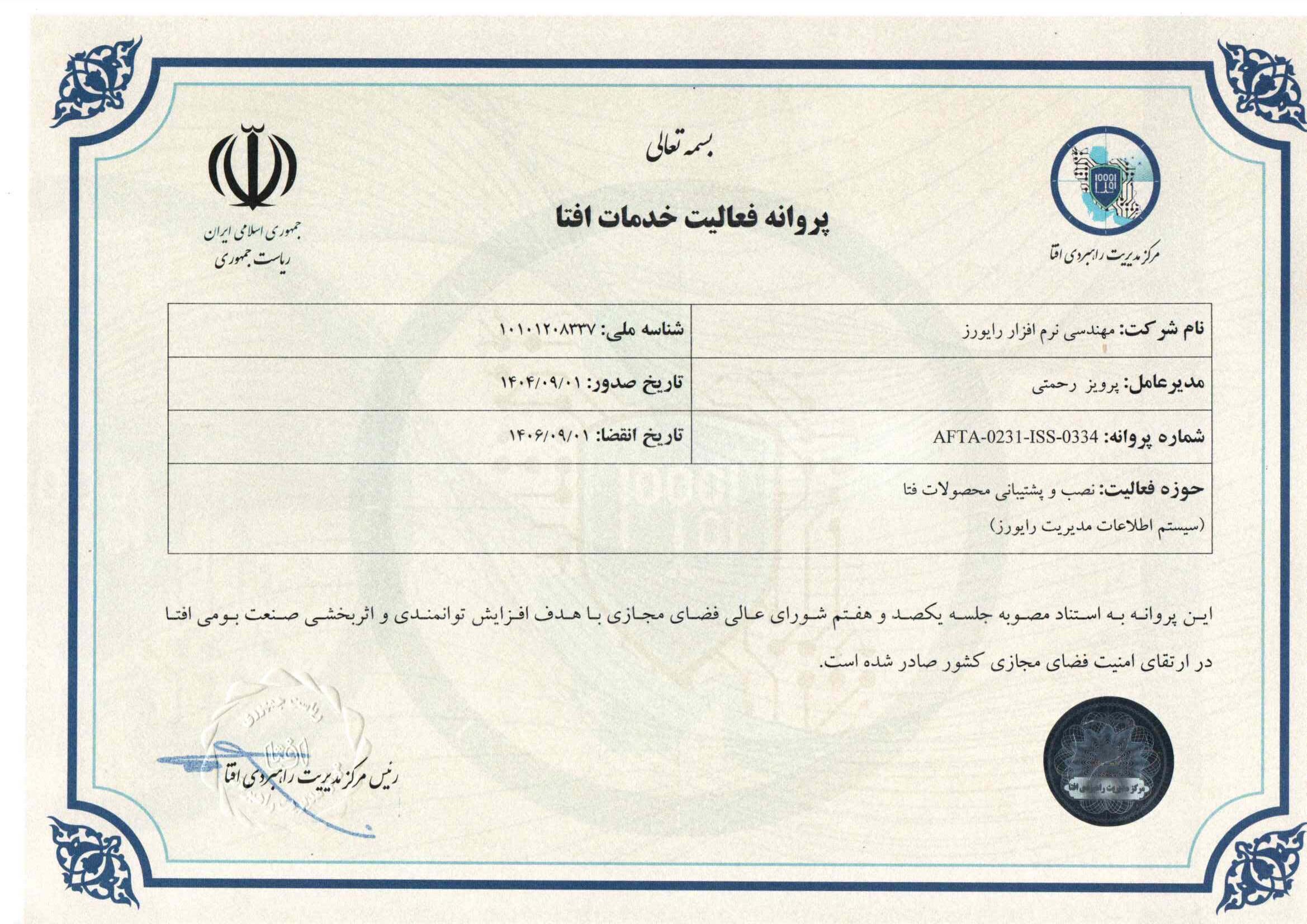 شركت مهندسي نرمافزار رايورز در سال 1380 به طراحي و استقرار سيستم مديريت كيفيت بر اساس خواستههاي استاندارد ISO – 9001-2000 Plus Tick IT اقدام نمود و پس از بررسي نتايح مميزي توسط مؤسسه EAQA انگليس، در زمرهی گروه نخست از شرکتهای نرمافزار ایرانی است که در تاريخ اول سپتامبر 2001 موفق به دريافت اين گواهينامه به شمارهی ثبت 1598 گرديد.