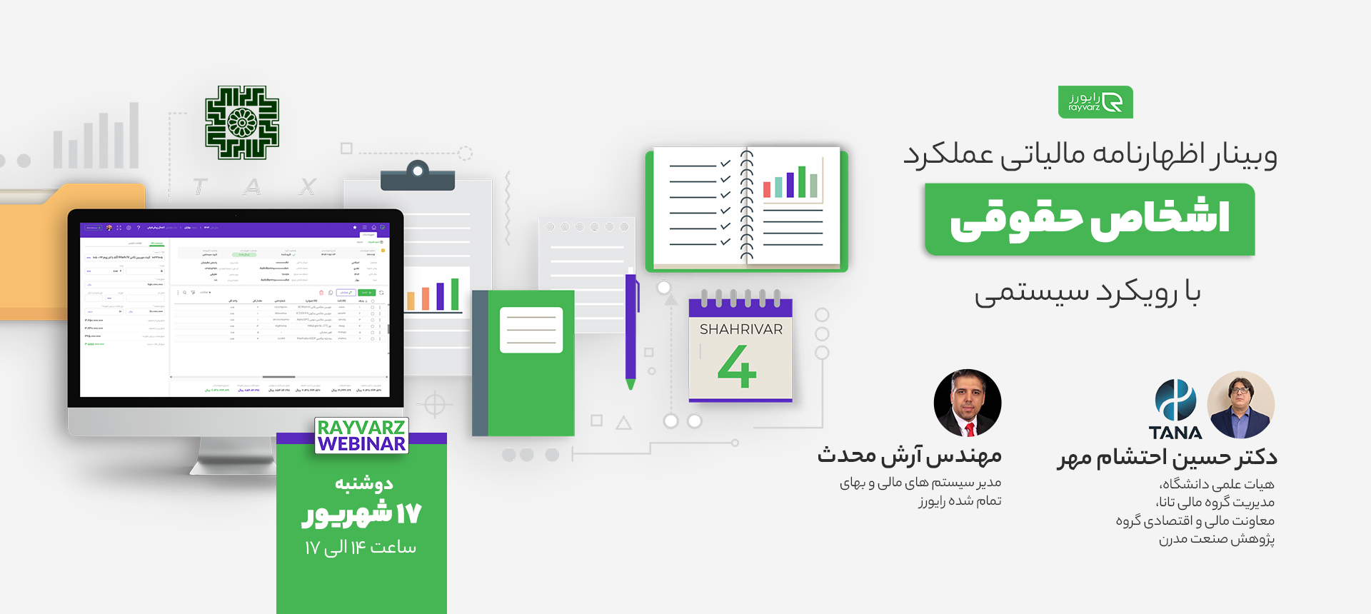 روز دوشنبه 17 شهریور 1404، شرکت مهندسی نرمافزار رایورز با همکاری شرکت خدمات مشاوره مالی تانا، وبینار تخصصی با عنوان «رویکرد سیستمی در تهیه اظهارنامه مالیاتی اشخاص حقوقی» را برگزار کرد.
